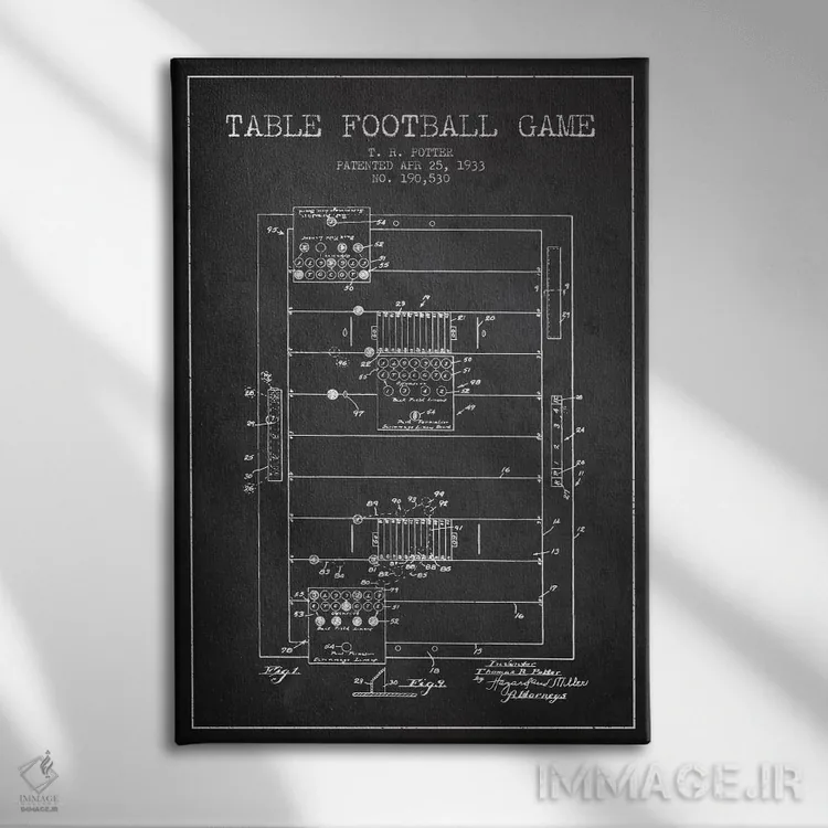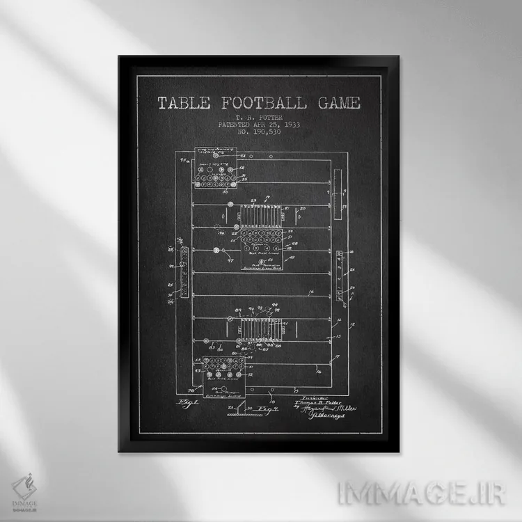 تابلو نقشهٔ ثبت اختراع فوتبال رومیزی خاکستری اثر پیکسل کهنه (استودیو/نام هنری)