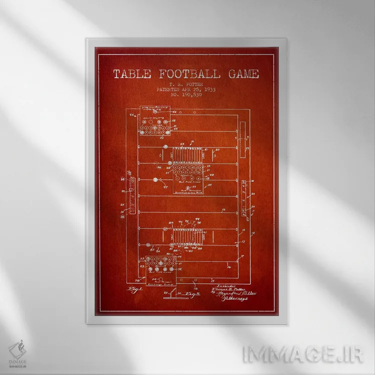 تابلو نقشهٔ ثبت اختراع فوتبال رومیزی قرمز اثر پیکسل کهنه (استودیو/نام هنری)