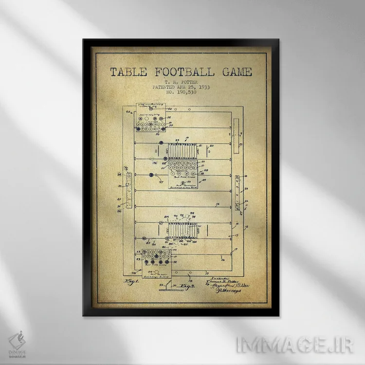 تابلو نقشهٔ ثبت اختراع فوتبال رومیزی (طرح کلاسیک) اثر پیکسل کهنه (استودیو/نام هنری)