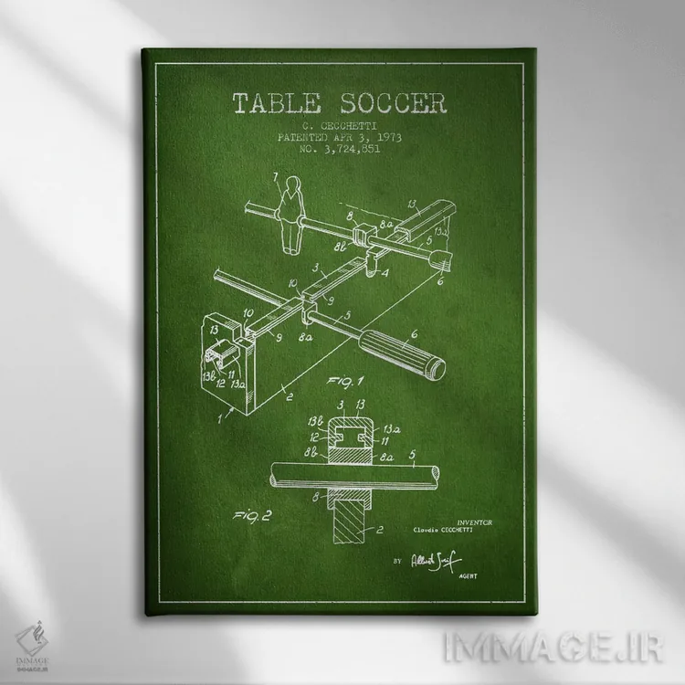«نقشهٔ ثبت اختراع فوتبالسُقری سبز» اثرِ «پیکسل کهنه (استودیو/نام هنری)» اگر به جزئیات کلاسیک و حس قدیمیِ شیک علاقه دارید، گزینهی خوبیست.