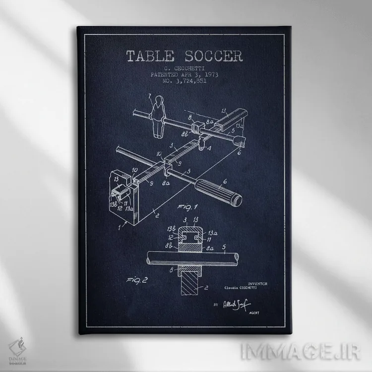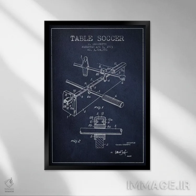 تابلو نقشهٔ ثبت اختراع فوتبال دستی (آبی نفتی) اثر پیکسل کهنه (استودیو/نام هنری)