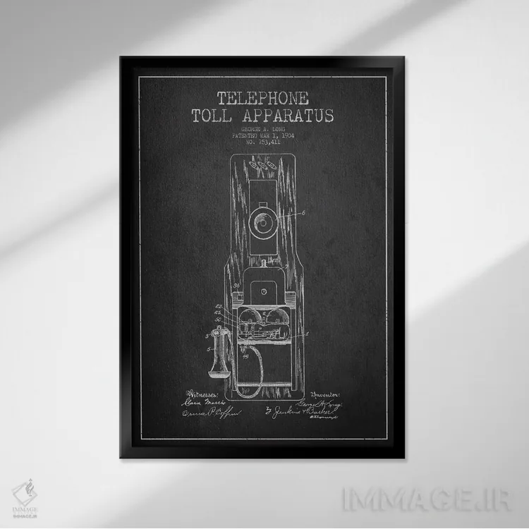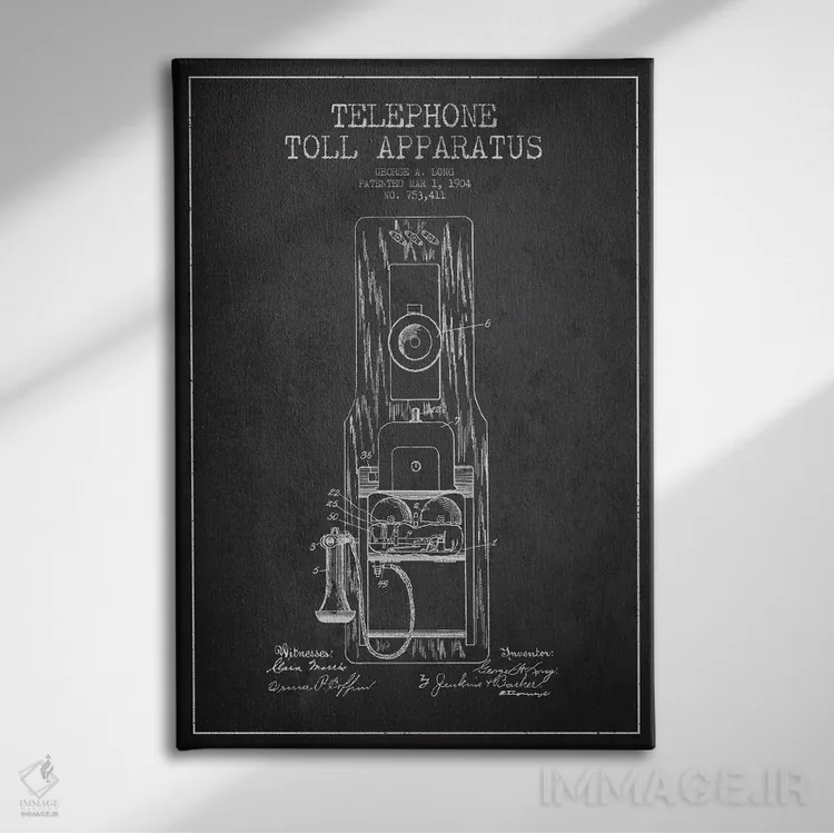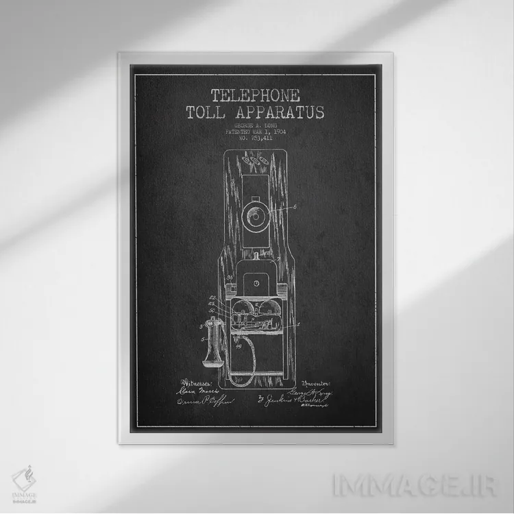 تابلو نقشهٔ ثبت اختراع تلفن راه دور بلند (تیره) اثر پیکسل کهنه (استودیو/نام هنری)