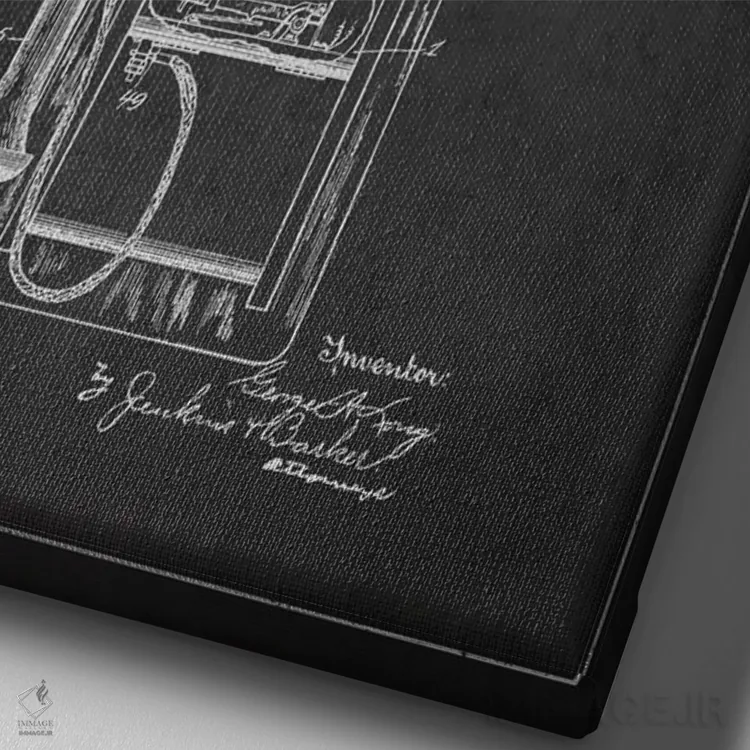 «نقشهٔ ثبت اختراع تلفن راه دور بلند (تیره)» اثرِ «پیکسل کهنه (استودیو/نام هنری)» برای فضاهای گرم و صمیمی مناسب است؛ بهخصوص کنار چوب تیره و نور زرد.