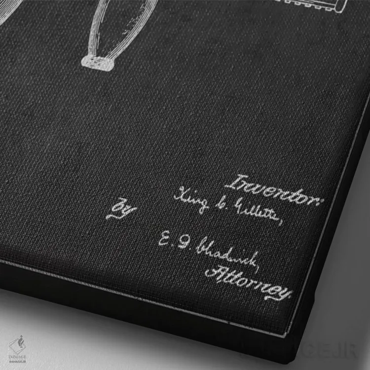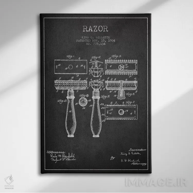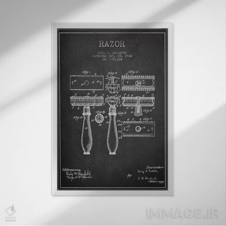 تابلو نقشهٔ ثبت اختراع تیغ اصلاح (زغالی) اثر پیکسل کهنه (استودیو/نام هنری)
