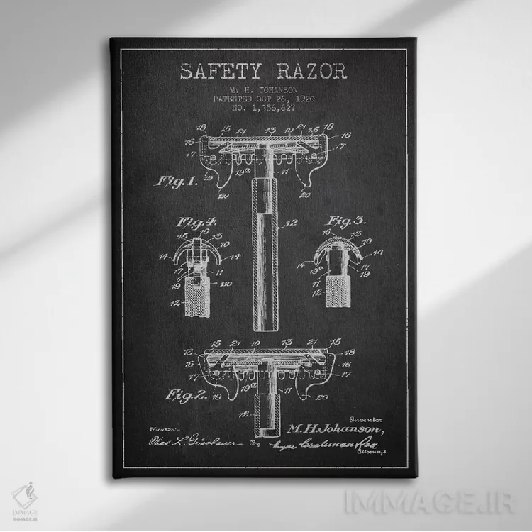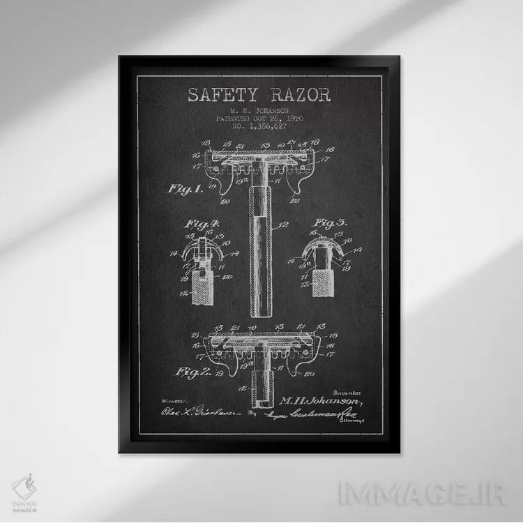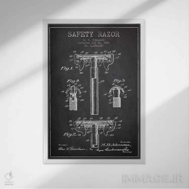 تابلو نقشهٔ ثبت اختراع تیغ اصلاح (زغالی) اثر پیکسل کهنه (استودیو/نام هنری)