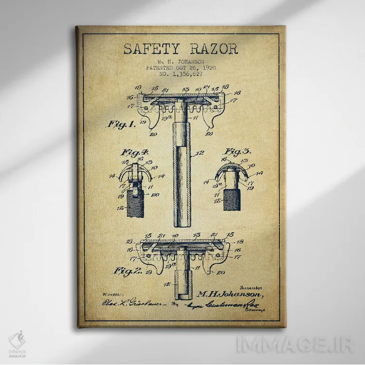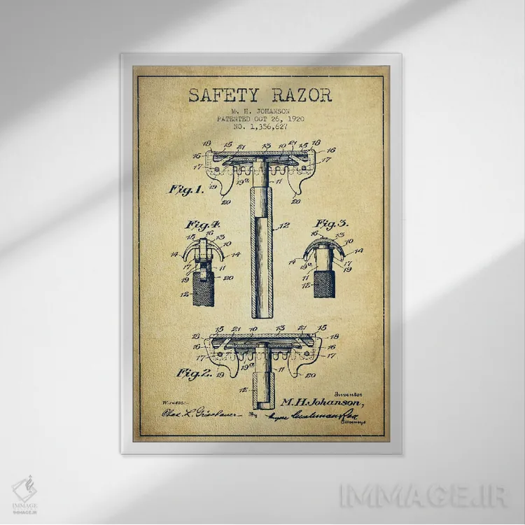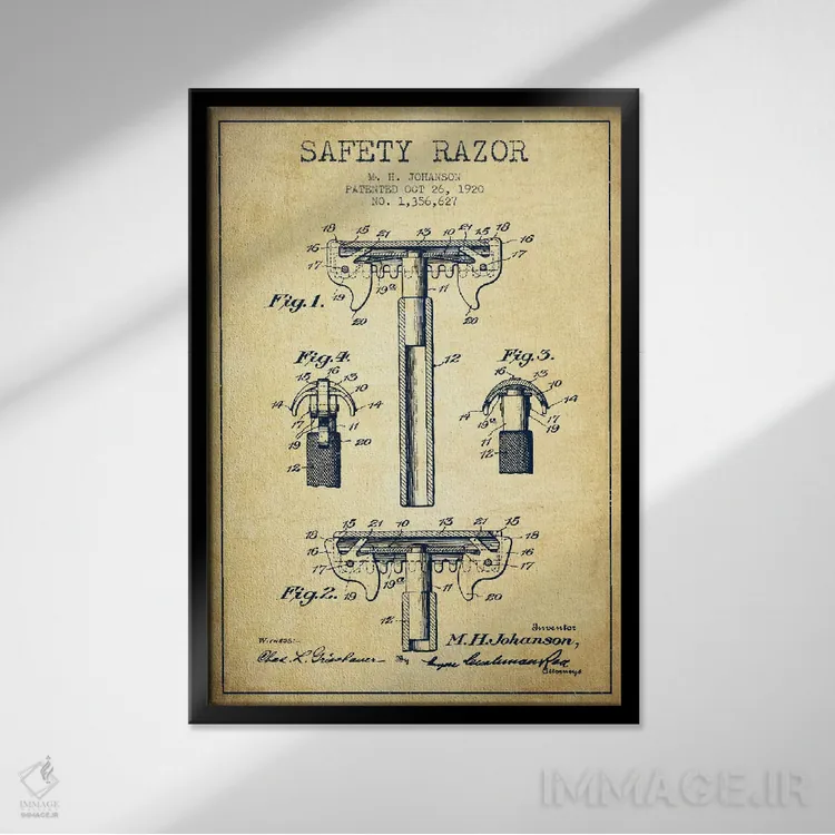«نقشه ثبت اختراع ریشتراش (کلاسیک)» اثرِ «پیکسل کهنه (استودیو/نام هنری)» اگر به جزئیات کلاسیک و حس قدیمیِ شیک علاقه دارید، گزینهی خوبیست.