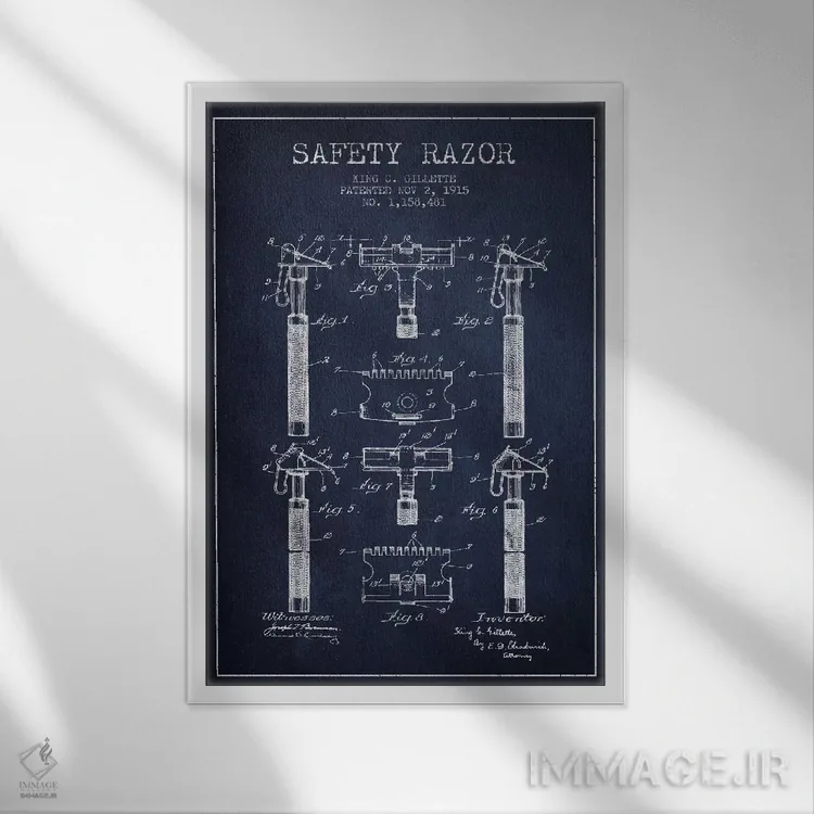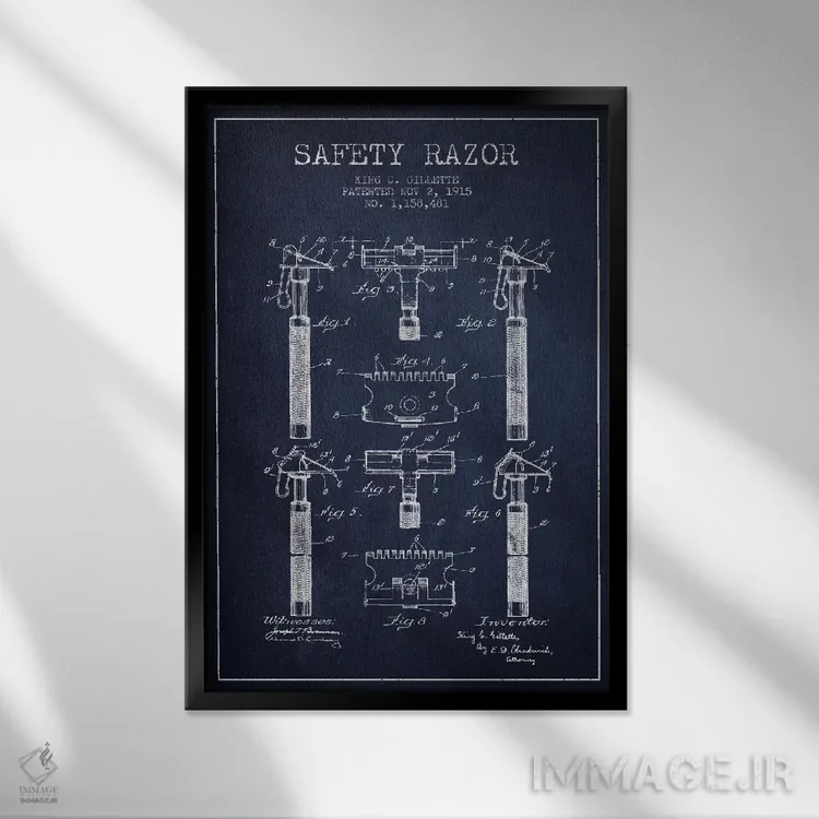 تابلو نقشه ثبت اختراع ریشتراش (آبی نفتی) اثر پیکسل کهنه (استودیو/نام هنری)