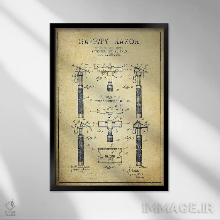 «نقشه ثبت اختراع ریشتراش (کلاسیک)» اثرِ «پیکسل کهنه (استودیو/نام هنری)» یک انتخاب مطمئن و هماهنگپذیر برای کسانیست که میخواهند فضا شخصیت و داستان داشته باشد.