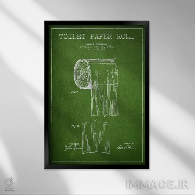 تابلو نقشه ثبت اختراع دستمال توالت (سبز) اثر پیکسل کهنه (استودیو/نام هنری) - نمای قاب‌دار مشکی