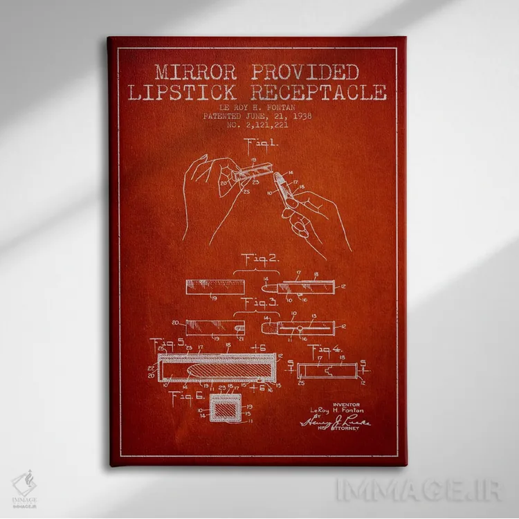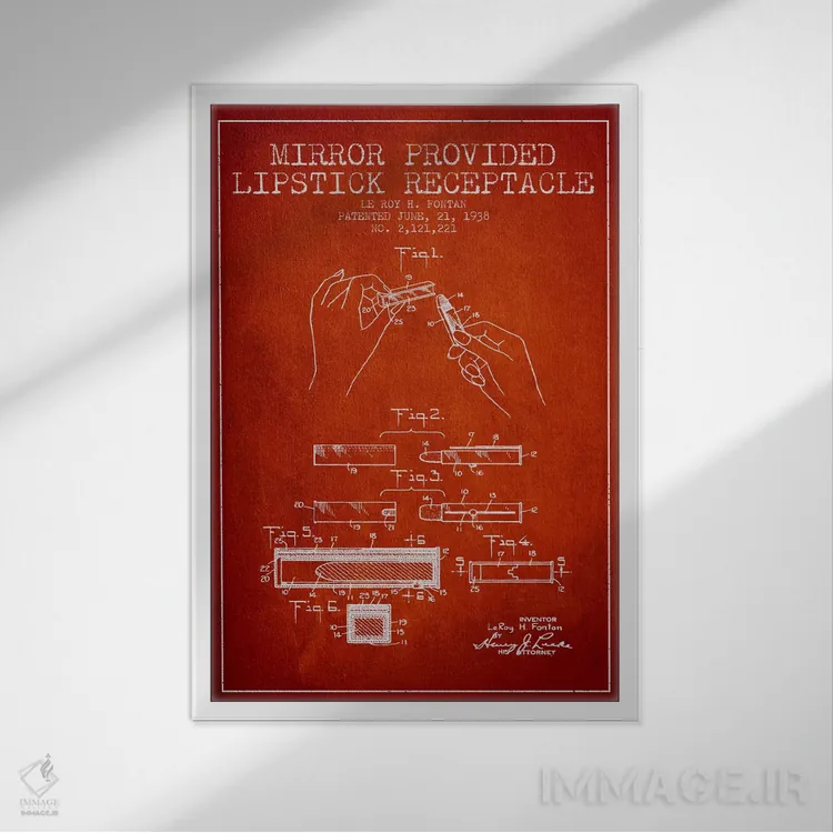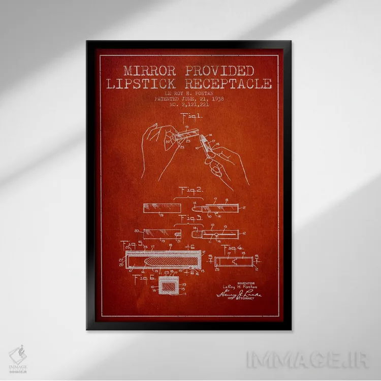 تابلو نقشهٔ ثبت اختراع رژ لب با آینه قرمز اثر پیکسل کهنه (استودیو/نام هنری)