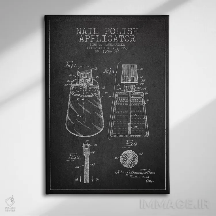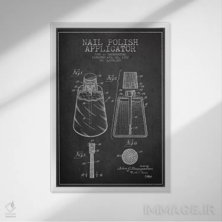 تابلو نقشهٔ ثبت اختراع اپلیکاتور لاک ناخن (زغالی) اثر پیکسل کهنه (استودیو/نام هنری) - نمای روبه‌رو روی دیوار