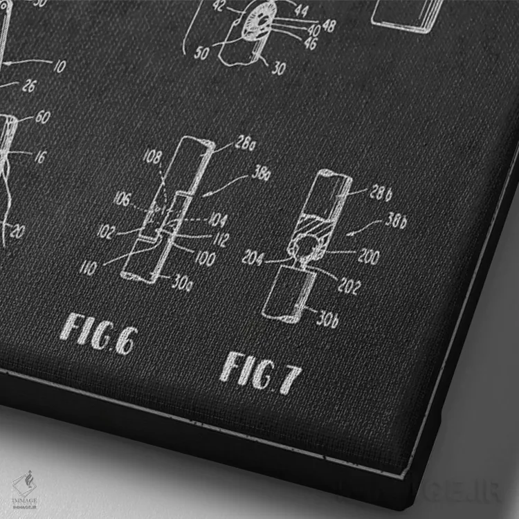 تابلو نقشهٔ ثبت اختراع ریمل قابل تنظیم (زغالی) اثر پیکسل کهنه (استودیو/نام هنری) - نمای نزدیک بافت بوم