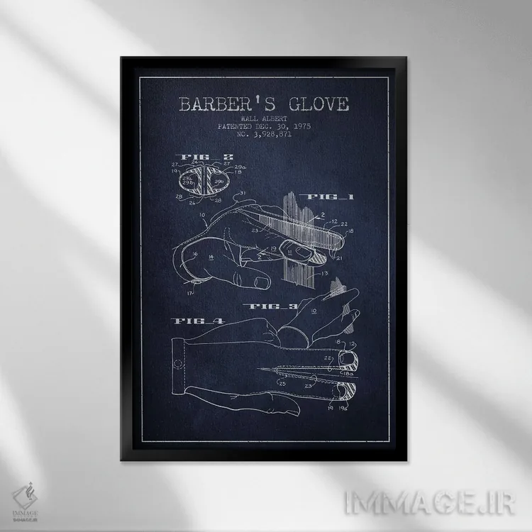 تابلو نقشه پتنت دستکش آرایشگری (آبی نفتی) اثر پیکسل کهنه (استودیو/نام هنری)