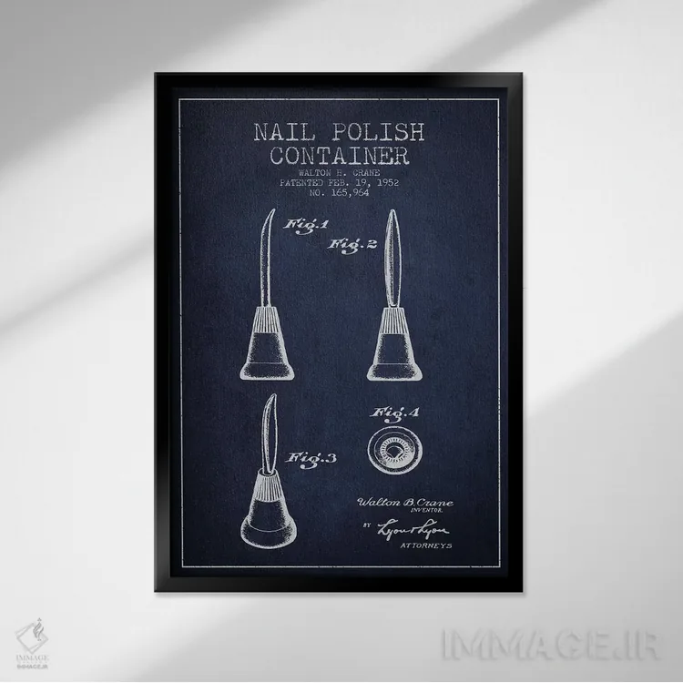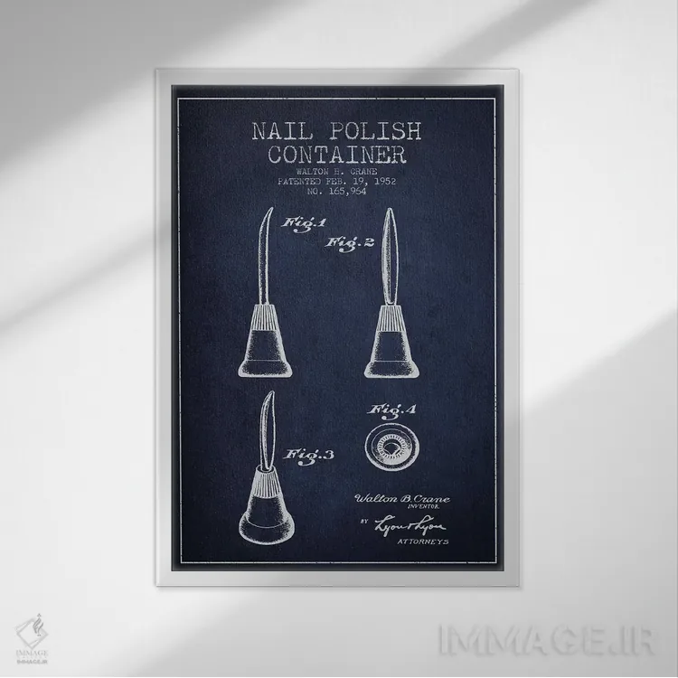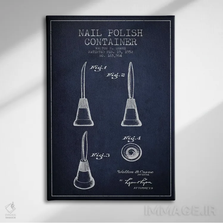 تابلو نقشه طرح اختراع لاک ناخن ظرفی (آبی سیر) اثر پیکسل کهنه (استودیو/نام هنری)