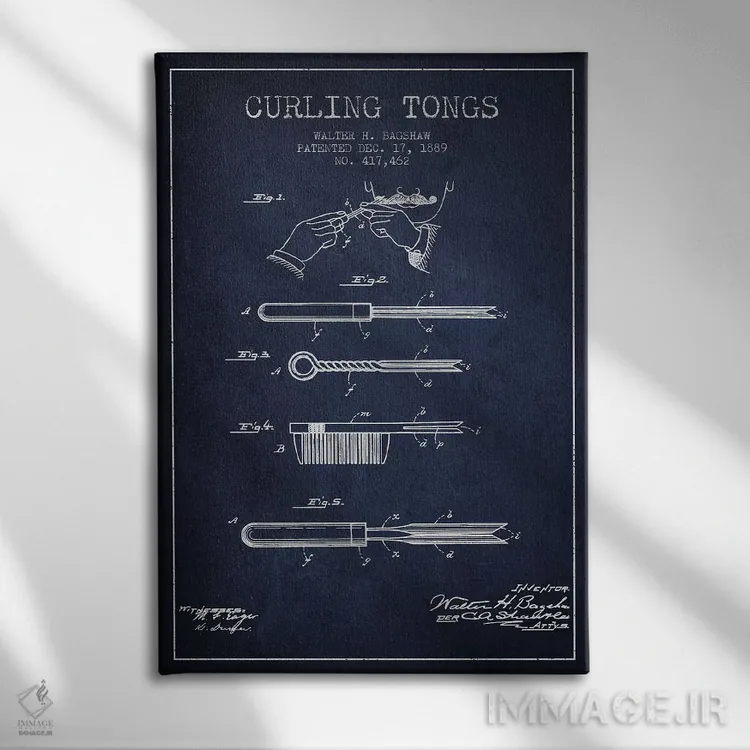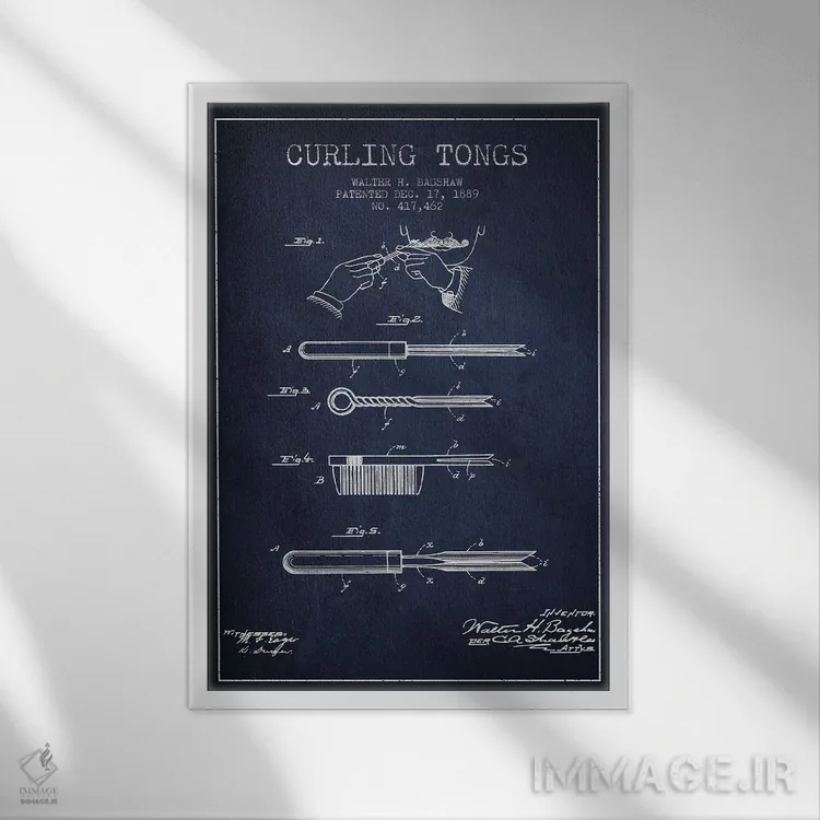 تابلو طرح پتنت فرکننده مو (سورمه‌ای) اثر پیکسل کهنه (استودیو/نام هنری)