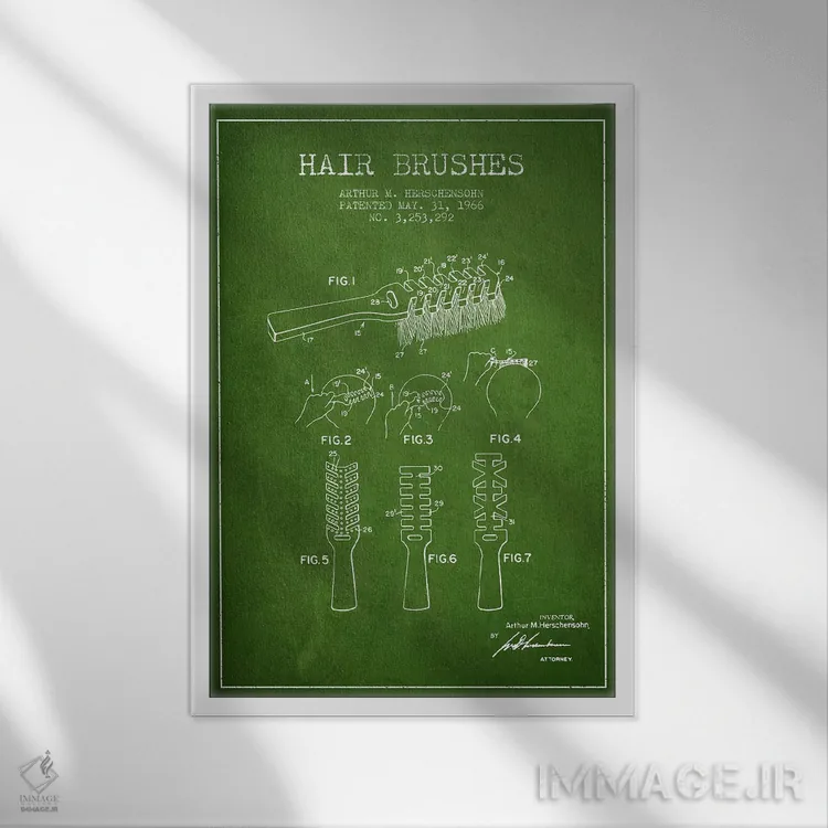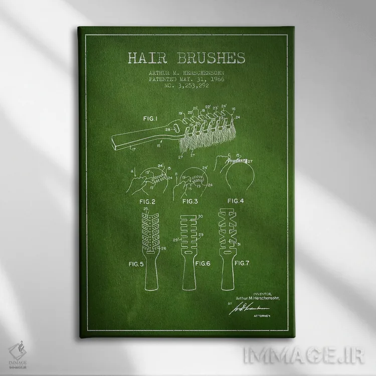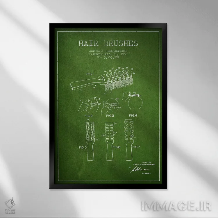 تابلو نقشهٔ ثبت اختراع برس مو (سبز) اثر پیکسل کهنه (استودیو/نام هنری)