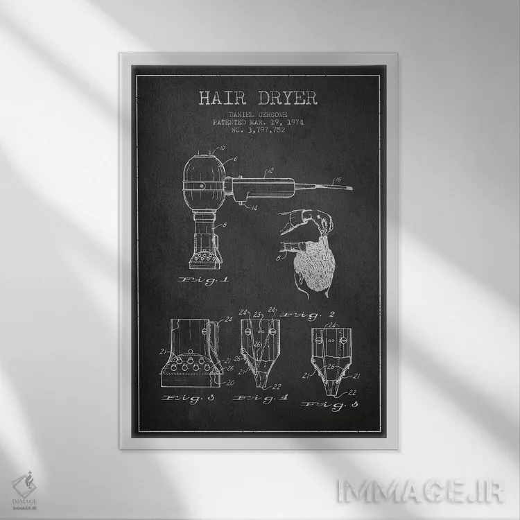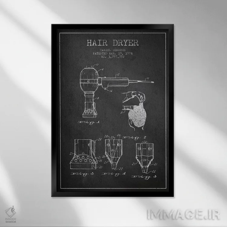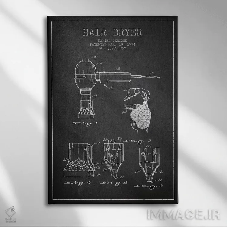تابلو نقشهٔ ثبت اختراع سشوار (طرح زغالی) اثر پیکسل کهنه (استودیو/نام هنری)