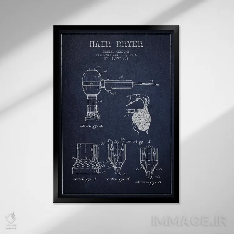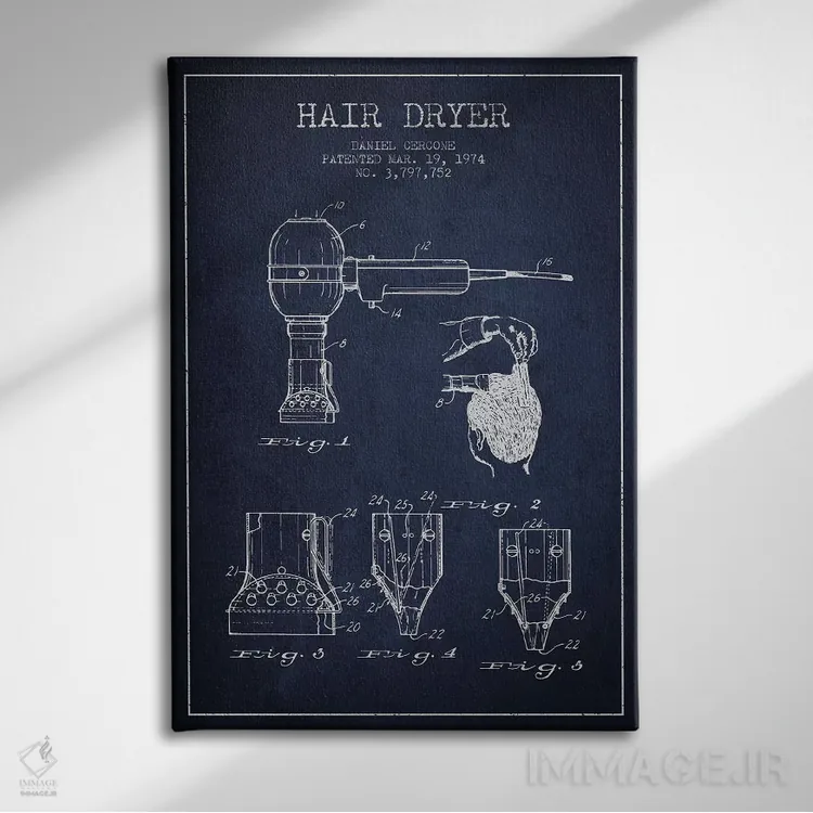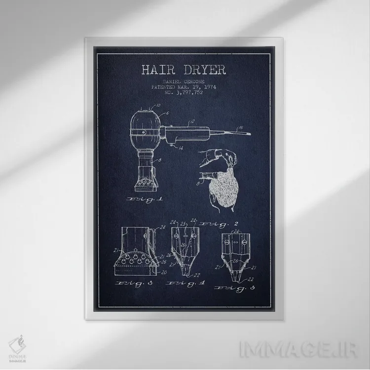 تابلو نقشهٔ ثبت اختراع سشوار (آبی نفتی) اثر پیکسل کهنه (استودیو/نام هنری)