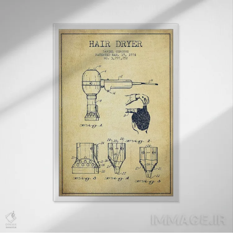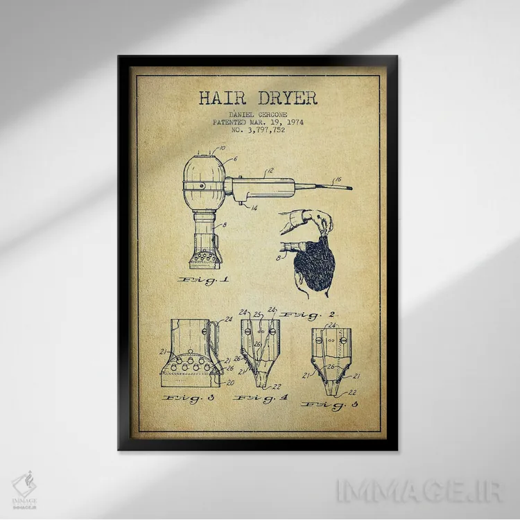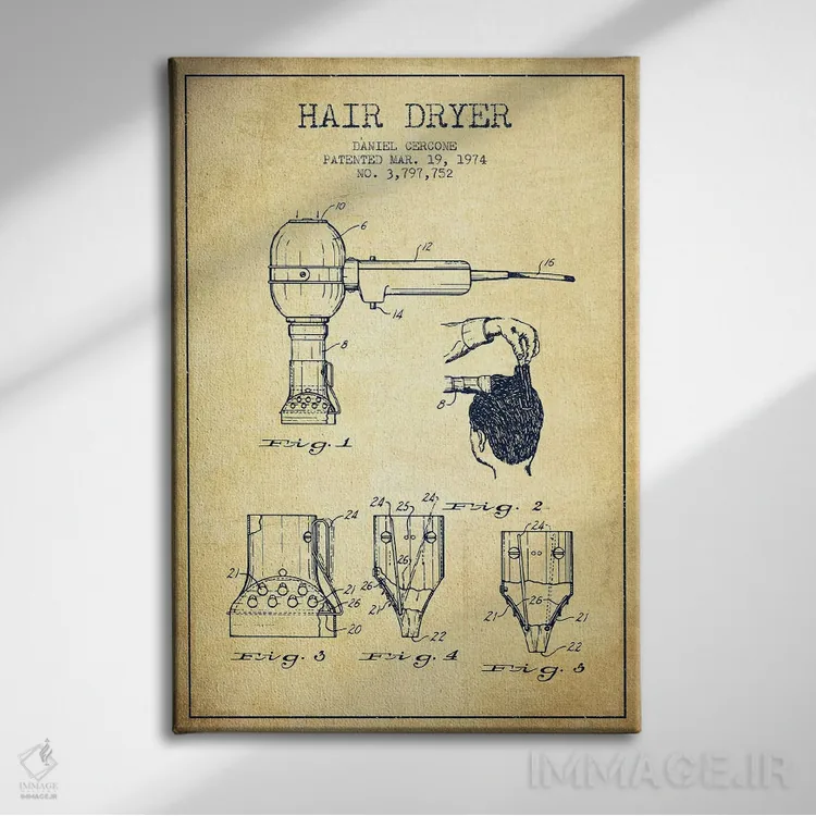 تابلو نقشهٔ ثبت اختراع سشوار (وینتیج/کلاسیک) اثر پیکسل کهنه (استودیو/نام هنری)