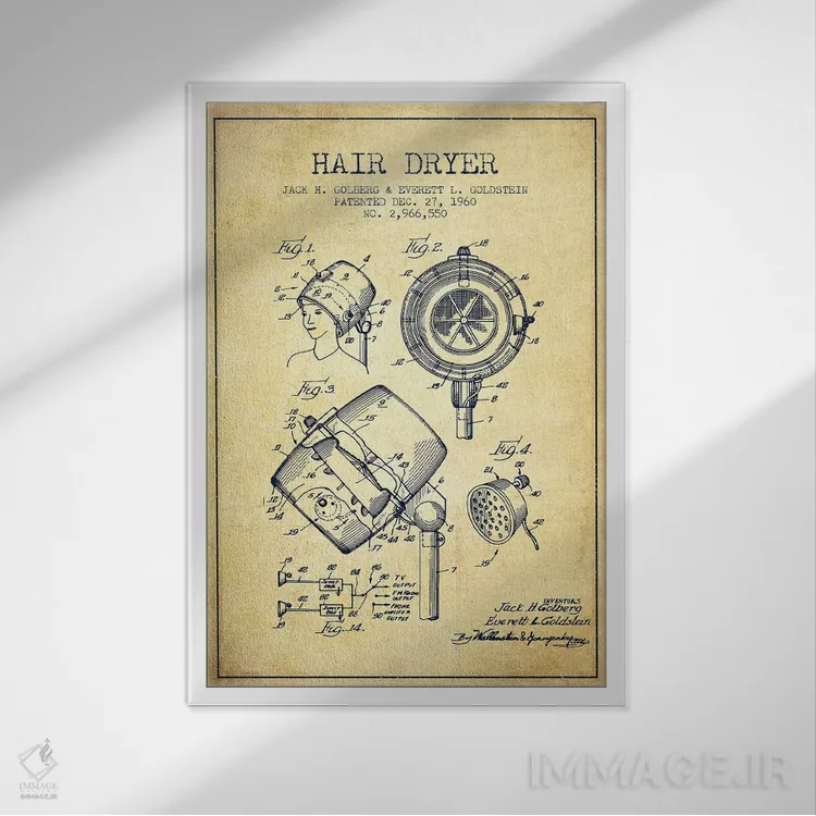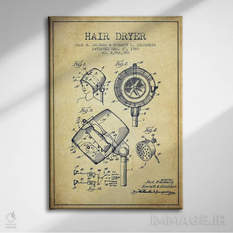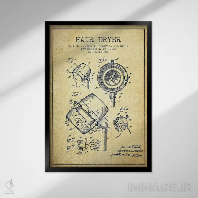 تابلو طرح حق ثبت اختراع صدای سشوار (وینتیج) اثر پیکسل کهنه (استودیو/نام هنری)