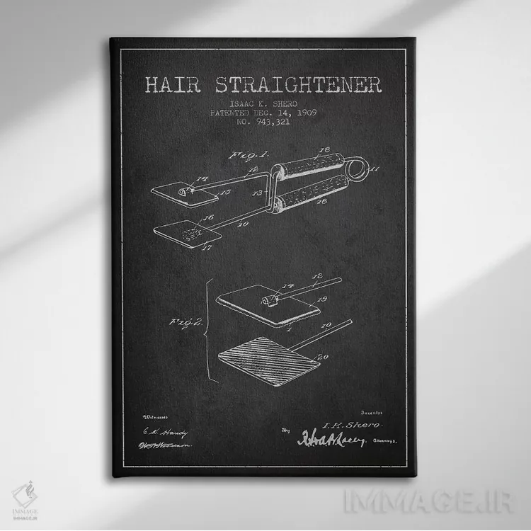 تابلو طرح حق ثبت اختراع اتو مو زغالی اثر پیکسل کهنه (استودیو/نام هنری) - نمای پرسپکتیو محصول