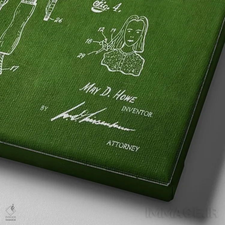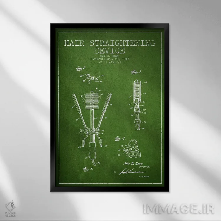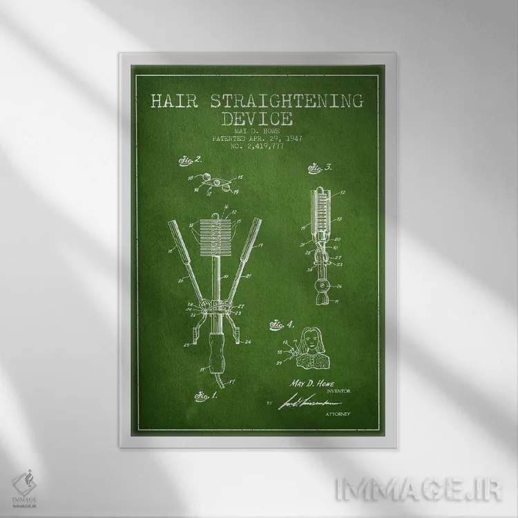 «طرح حق ثبت اختراع صافکننده مو سبز» اثرِ «پیکسل کهنه (استودیو/نام هنری)» با حالوهوای هنری، حس نوستالژی را شیک و دکورپذیر به فضا اضافه میکند.
