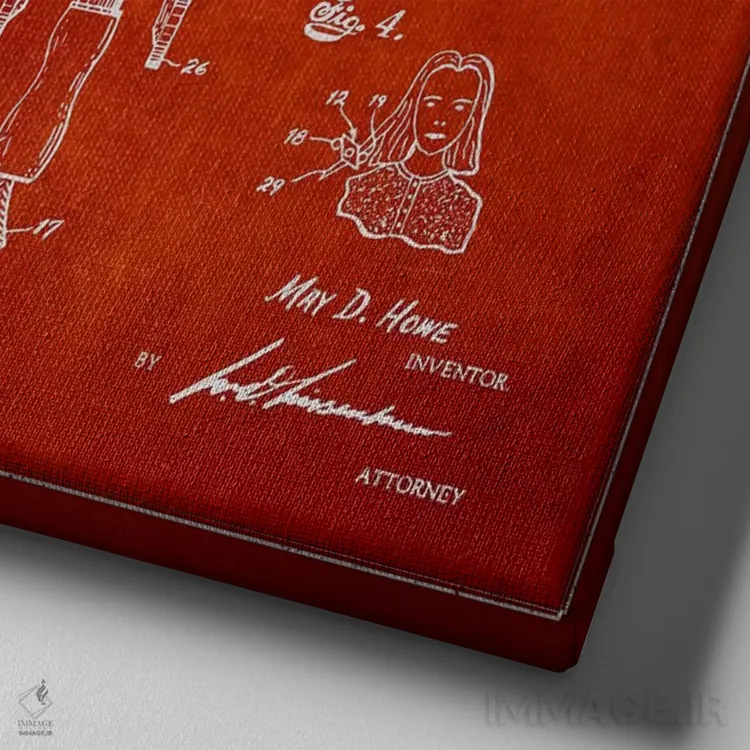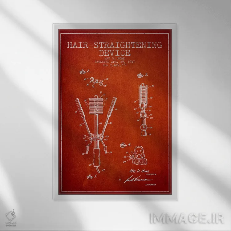 تابلو طرح حق ثبت اختراع صاف‌کننده مو قرمز اثر پیکسل کهنه (استودیو/نام هنری) - نمای روبه‌رو روی دیوار
