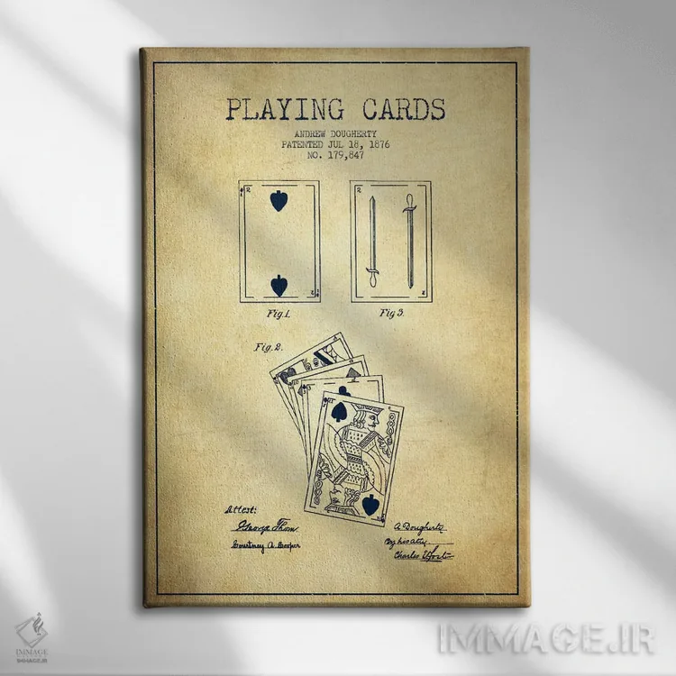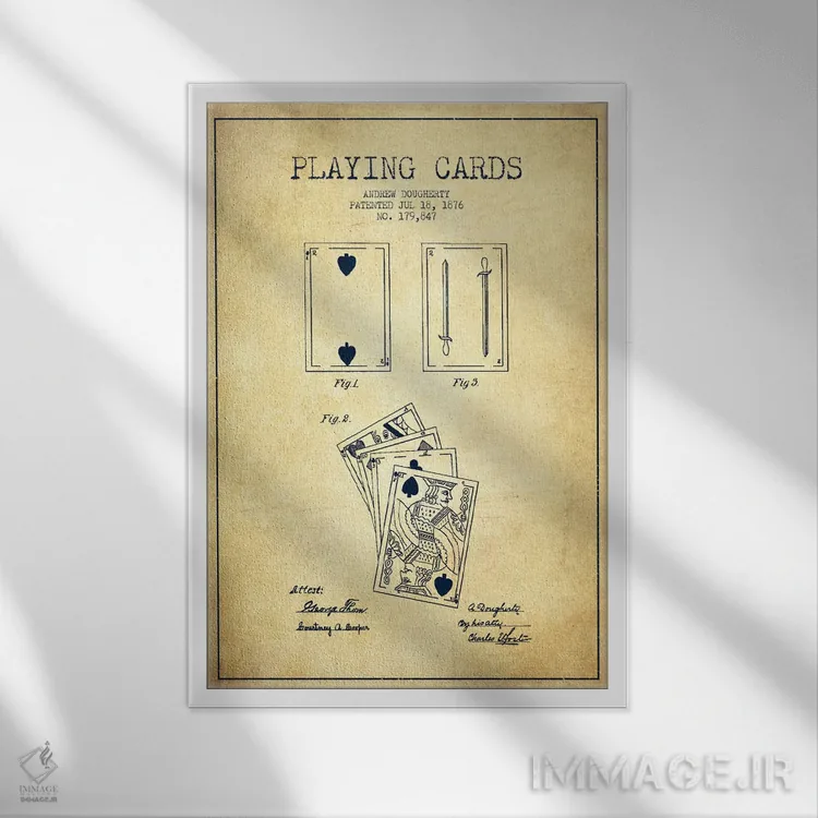 تابلو نقشه اختراع کارت‌های داگرتی قدیمی اثر پیکسل کهنه (استودیو/نام هنری) - نمای روبه‌رو روی دیوار