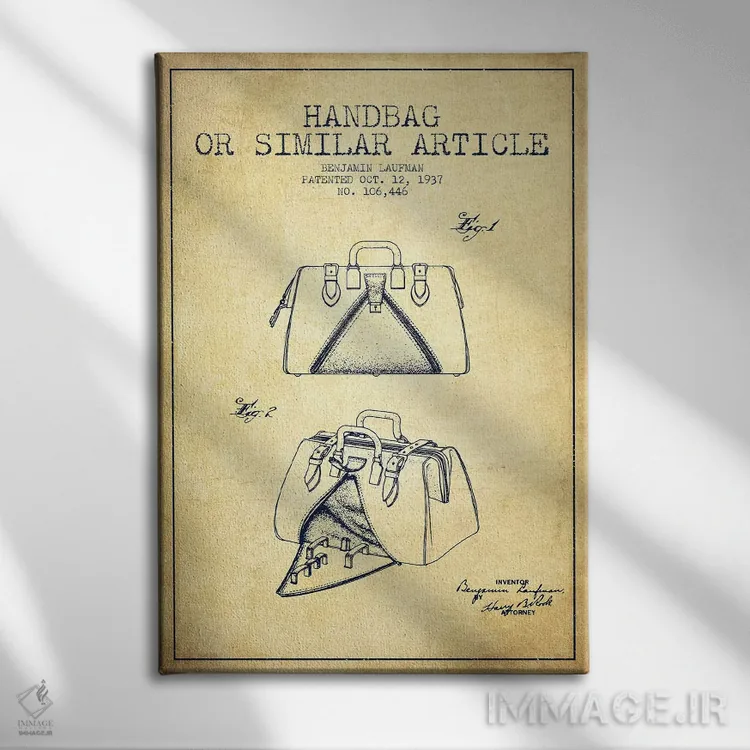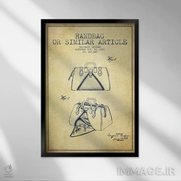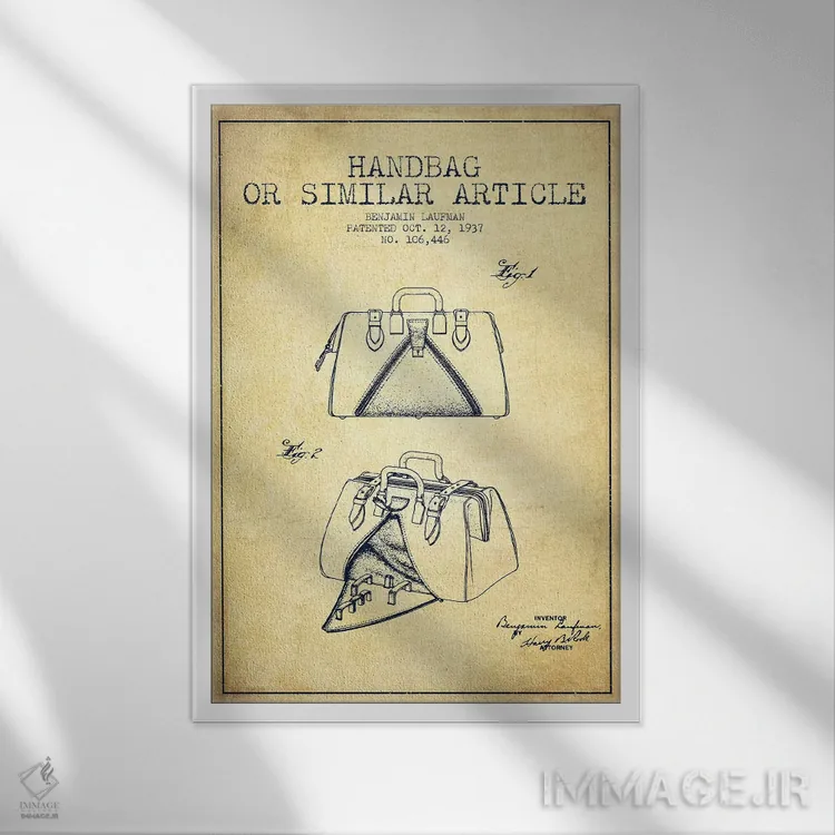 «نقشهٔ ثبت اختراع کیف دستی یا موارد مشابه (وینتیج)» اثرِ «پیکسل کهنه (استودیو/نام هنری)» یک انتخاب مطمئن و هماهنگپذیر برای کسانیست که میخواهند فضا شخصیت و داستان داشته باشد.