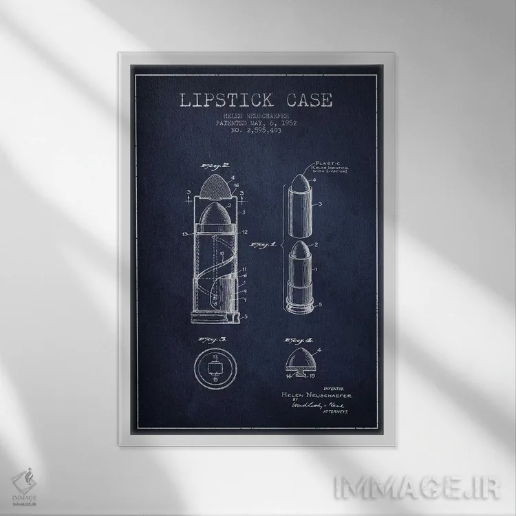 تابلو نقشهٔ ثبت اختراع جعبه رژلب (طرح سرمهای) اثر پیکسل کهنه (استودیو/نام هنری)