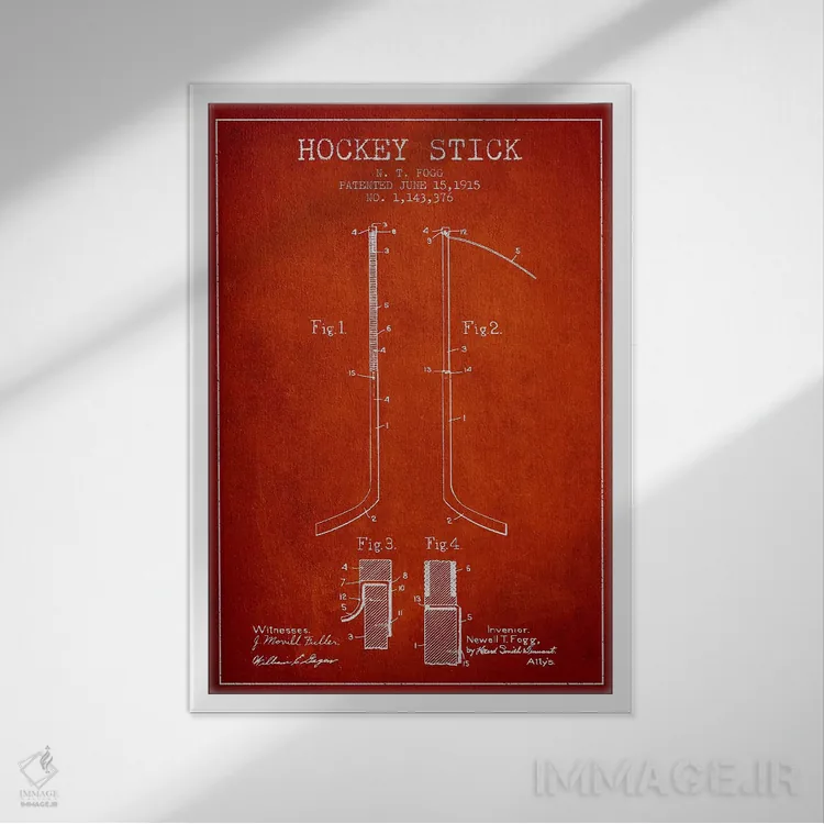 تابلو نقشهٔ ثبت اختراع چوب هاکی (طرح قرمز) اثر پیکسل کهنه (استودیو/نام هنری)