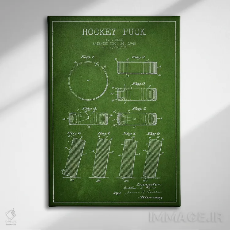 تابلو نقشهٔ ثبت اختراع پک هاکی (طرح سبز) اثر پیکسل کهنه (استودیو/نام هنری)