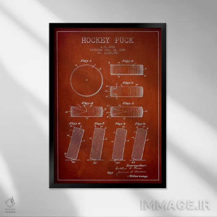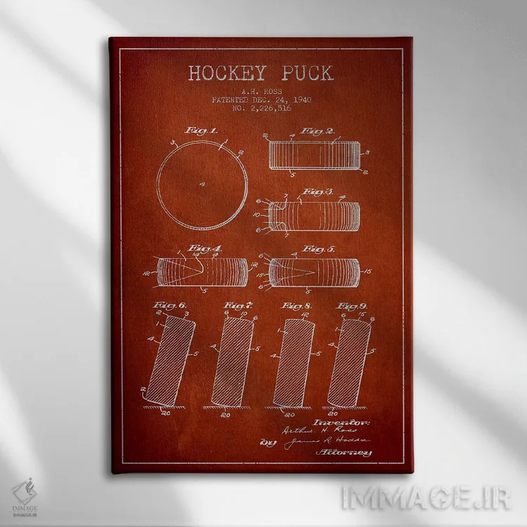 تابلو نقشهٔ ثبت اختراع پک هاکی (طرح قرمز) اثر پیکسل کهنه (استودیو/نام هنری)
