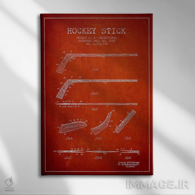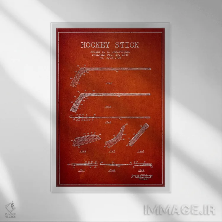 تابلو نقشهٔ ثبت اختراع چوب هاکی (طرح قرمز) اثر پیکسل کهنه (استودیو/نام هنری)