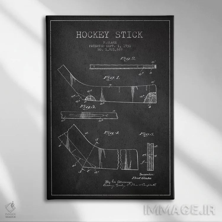 تابلو نقشهٔ ثبت اختراع چوب هاکی (طرح زغالی) اثر پیکسل کهنه (استودیو/نام هنری) - نمای پرسپکتیو محصول