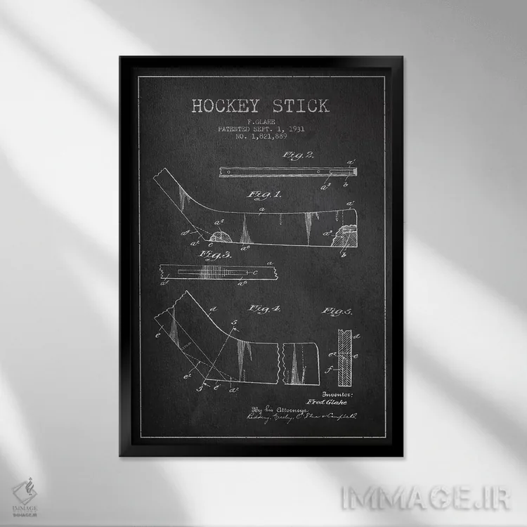 تابلو نقشهٔ ثبت اختراع چوب هاکی (طرح زغالی) اثر پیکسل کهنه (استودیو/نام هنری) - نمای قاب‌دار مشکی