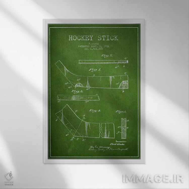 تابلو نقشهٔ ثبت اختراع چوب هاکی (طرح سبز) اثر پیکسل کهنه (استودیو/نام هنری)