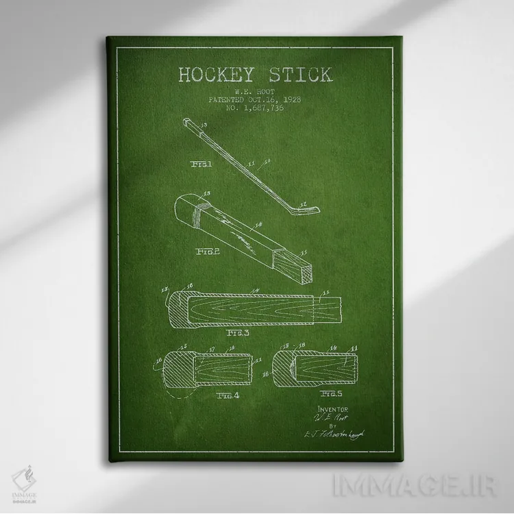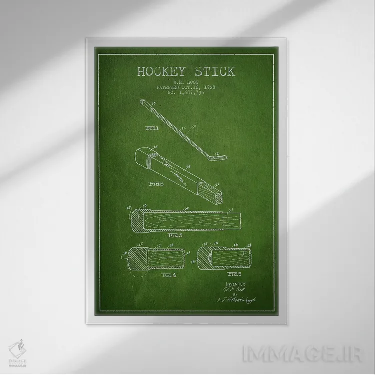 تابلو نقشهٔ ثبت اختراع چوب هاکی (طرح سبز) اثر پیکسل کهنه (استودیو/نام هنری)