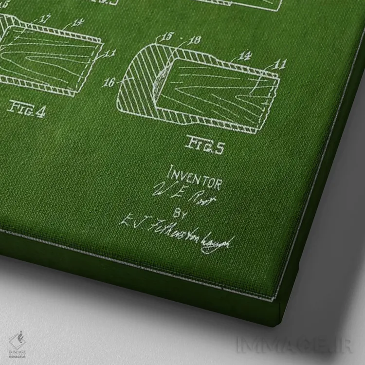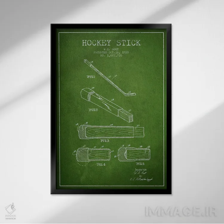 «نقشهٔ ثبت اختراع چوب هاکی (طرح سبز)» اثرِ «پیکسل کهنه (استودیو/نام هنری)» برای فضاهای گرم و صمیمی مناسب است؛ بهخصوص کنار چوب تیره و نور زرد.