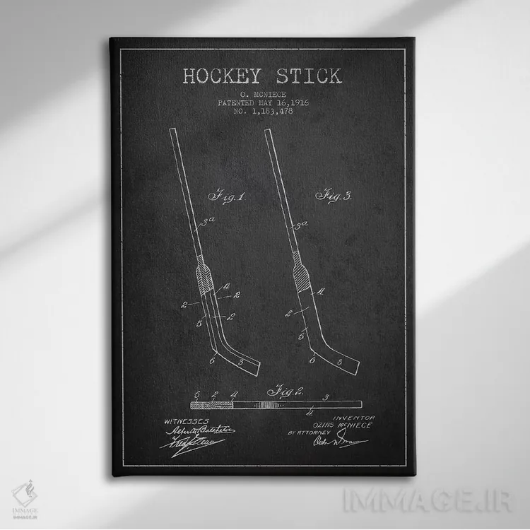 تابلو نقشهٔ ثبت اختراع چوب هاکی (طرح زغالی) اثر پیکسل کهنه (استودیو/نام هنری)