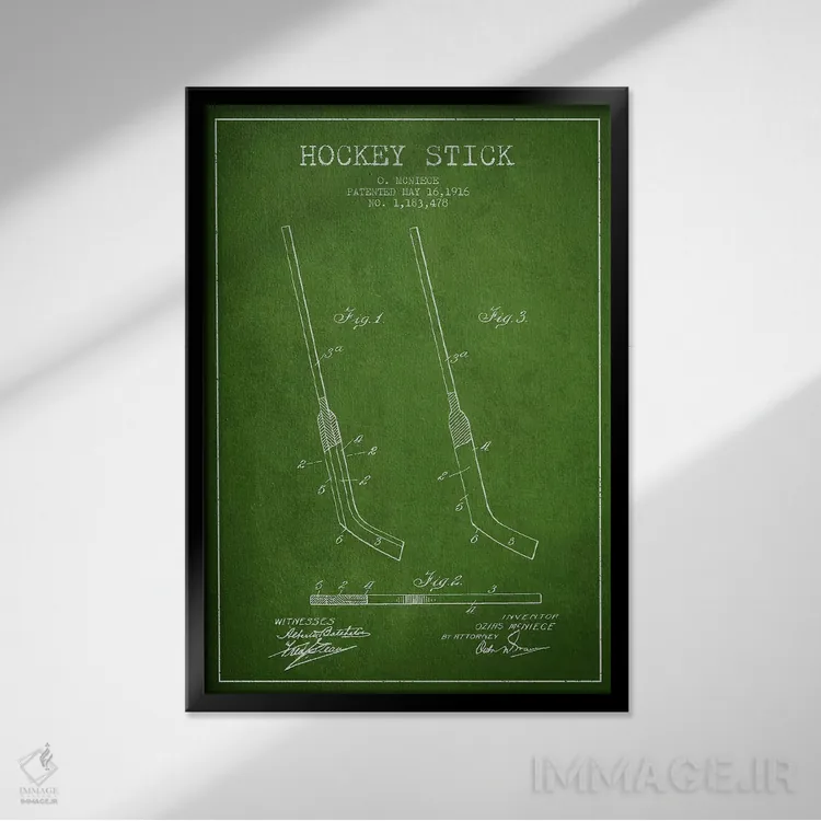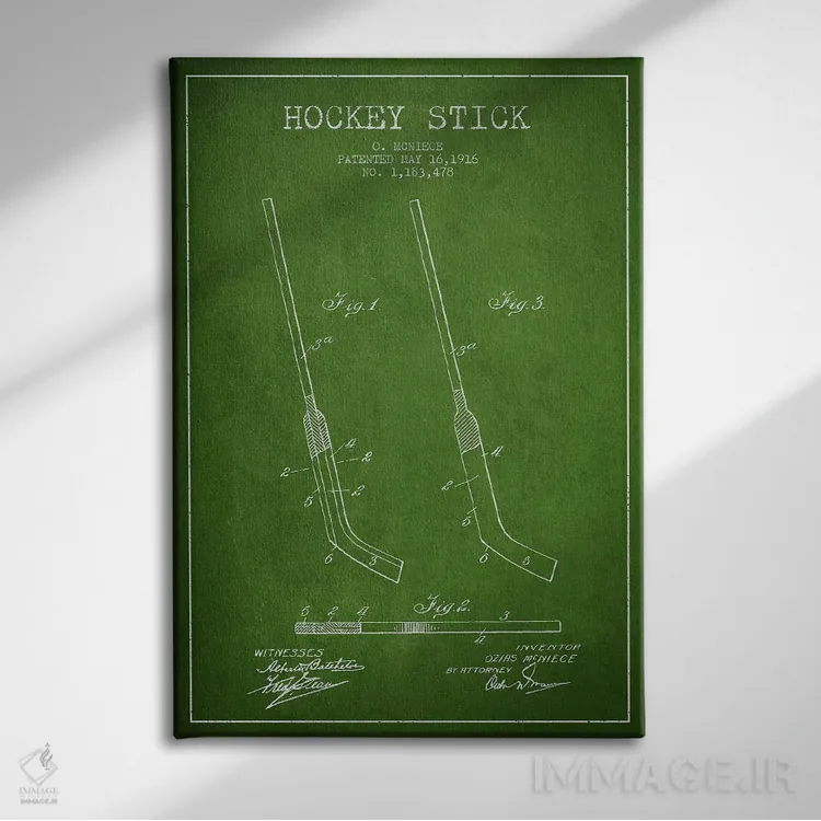 تابلو نقشهٔ ثبت اختراع چوب هاکی (طرح سبز) اثر پیکسل کهنه (استودیو/نام هنری)