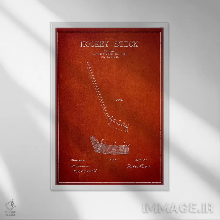 تابلو نقشهٔ ثبت اختراع چوب هاکی (طرح قرمز) اثر پیکسل کهنه (استودیو/نام هنری)