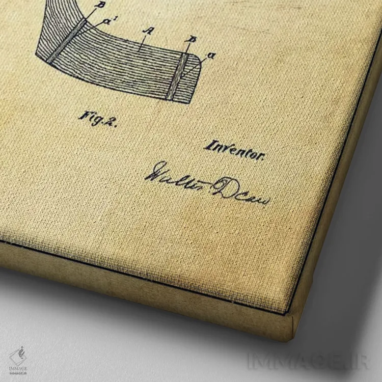 تابلو نقشهٔ ثبت اختراع چوب هاکی (طرح وینتیج) اثر پیکسل کهنه (استودیو/نام هنری) - نمای نزدیک بافت بوم