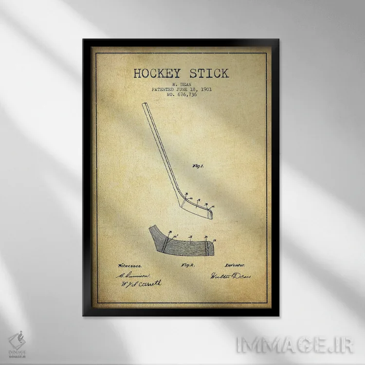 تابلو نقشهٔ ثبت اختراع چوب هاکی (طرح وینتیج) اثر پیکسل کهنه (استودیو/نام هنری)