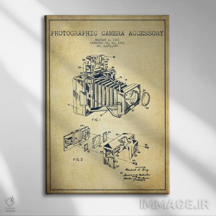 تابلو نقشهٔ ثبت اختراع دوربین (طرح وینتیج) اثر پیکسل کهنه (استودیو/نام هنری)