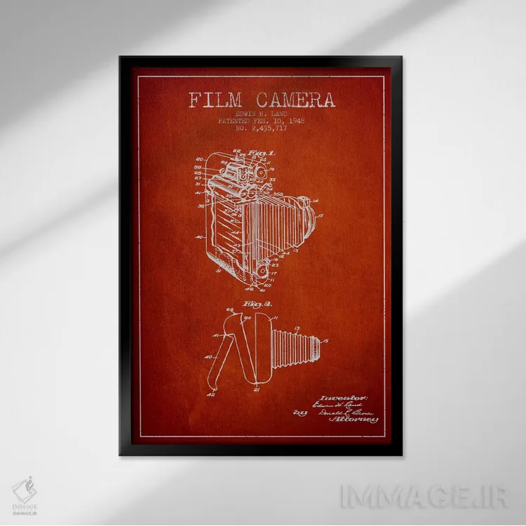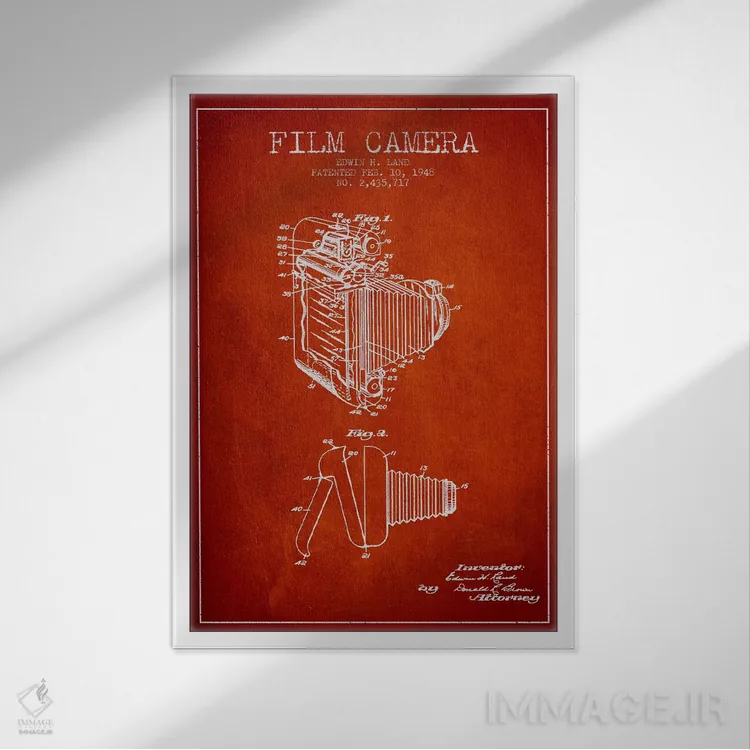 تابلو نقشهٔ ثبت اختراع دوربین (طرح قرمز) اثر پیکسل کهنه (استودیو/نام هنری)