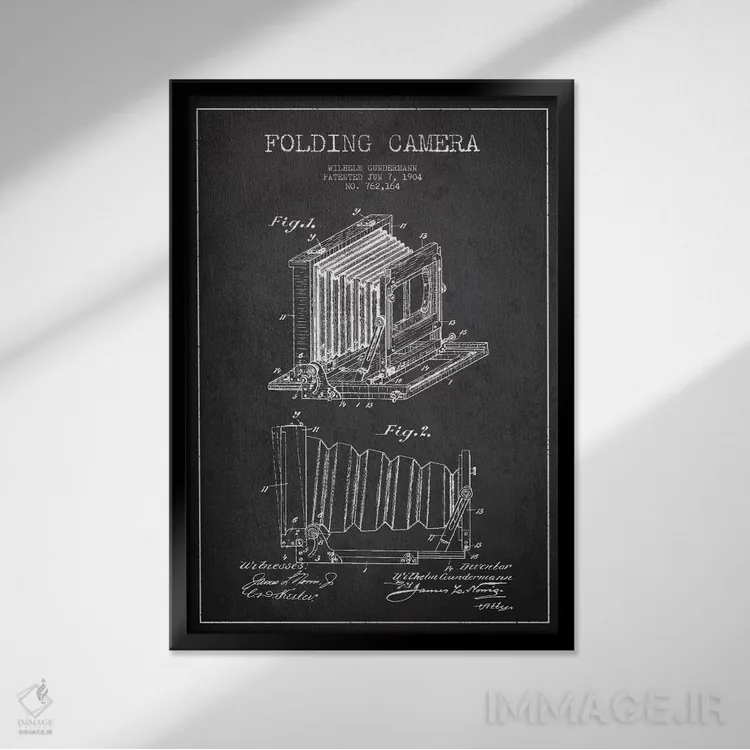 تابلو نقشهٔ اختراع دوربین (ذغالی) اثر پیکسل کهنه (استودیو/نام هنری) - نمای قاب‌دار مشکی