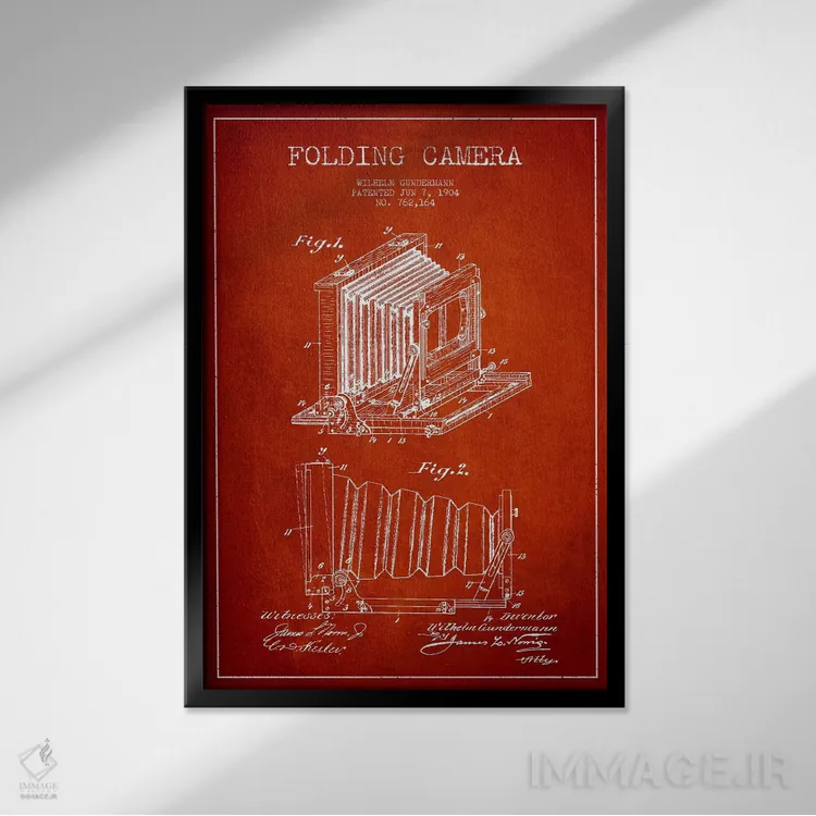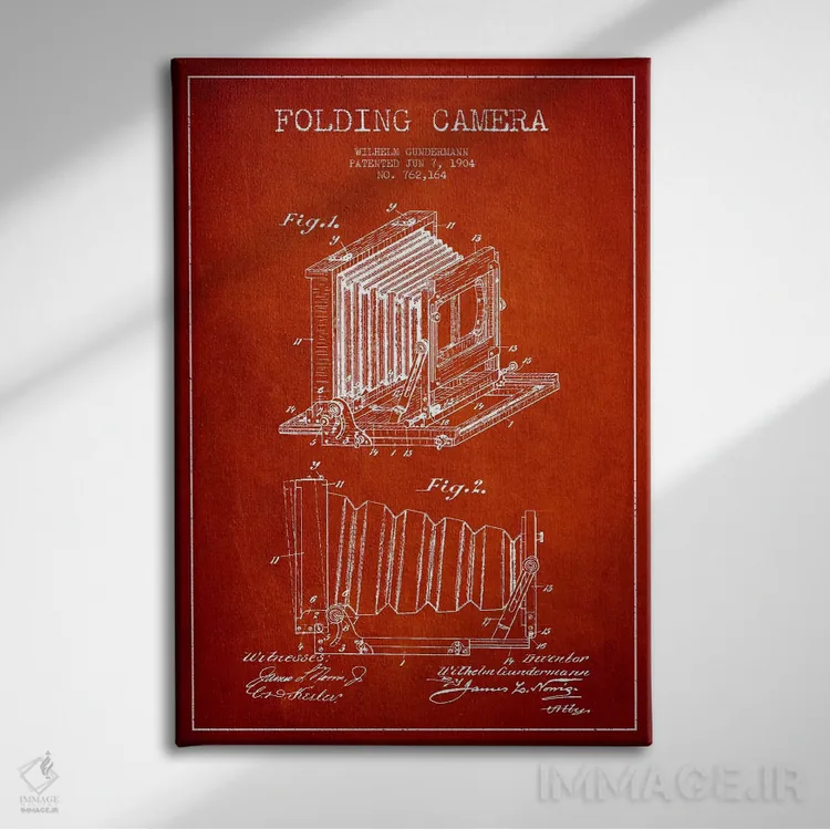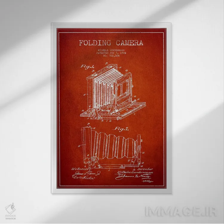 اگر دکور شما کلاسیک/رترو است، «نقشهٔ اختراع دوربین (قرمز)» اثرِ «پیکسل کهنه (استودیو/نام هنری)» با سبک هنری کاملاًً مینشیند.