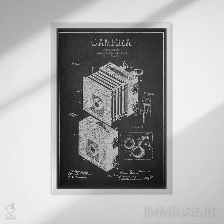 تابلو نقشهٔ اختراع دوربین (ذغالی) اثر پیکسل کهنه (استودیو/نام هنری)