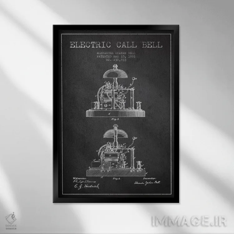 تابلو نقشهٔ اختراع زنگ الکس برقی (ذغالی) اثر پیکسل کهنه (استودیو/نام هنری)